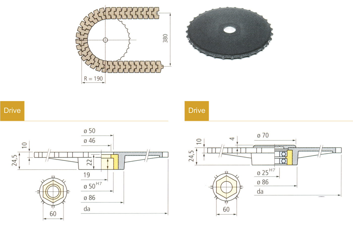 Rubber Table Top Chain은 페트류, 캔류, 박스류 등을 이송하는데 적합하다.